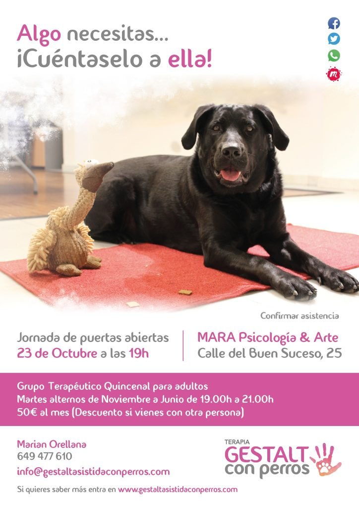 Ademas de la actividad que ofrecemos Pluma y yo de Gestalt Asistida con Perros, puedes encontrar una amplia variedad de ellas de manos de grandes profesionales.
